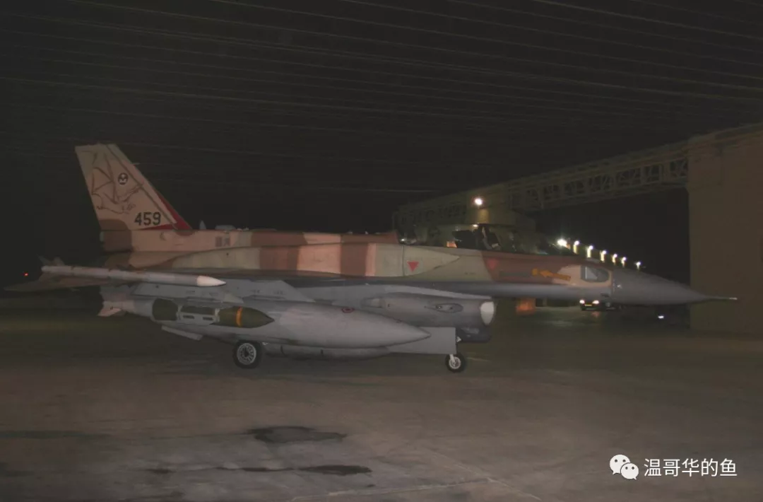> 參戰的459號F-16I,來自119中隊(並非空襲當晚拍攝,掛載的是GPS制導的JDAM)