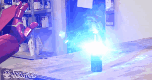 除此之外,他們還復刻了雷錘的錘子,並上演了電影裏雷神把電引到美隊盾牌上的一幕,這特麼真的太勇了。