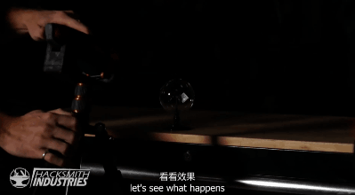 團隊為了給大家欣賞被激光擊中的第一視角,還犧牲了一台攝像機。。