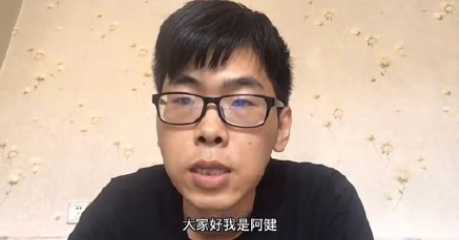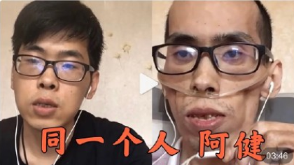 彼時視頻中的阿健頂着黝黑濃密的頭髮,戴着黑框眼鏡做起自我介紹,看起來與常人並無二致。
