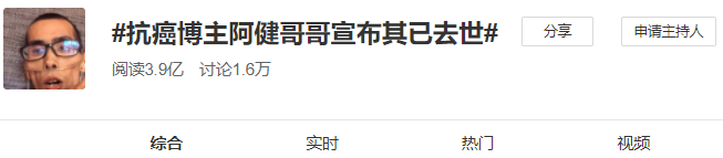 2020年5月29日,阿健發佈了第一條視頻——《一個直腸癌晚期患者的無助請求》。