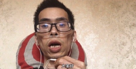 視頻中,他貼着耳機線的話筒講話,能明顯感覺到他説話的費力。