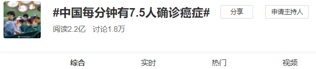 中國惡性腫瘤每年發病約392.9萬人,每分鐘有7.5人被確診為癌症。