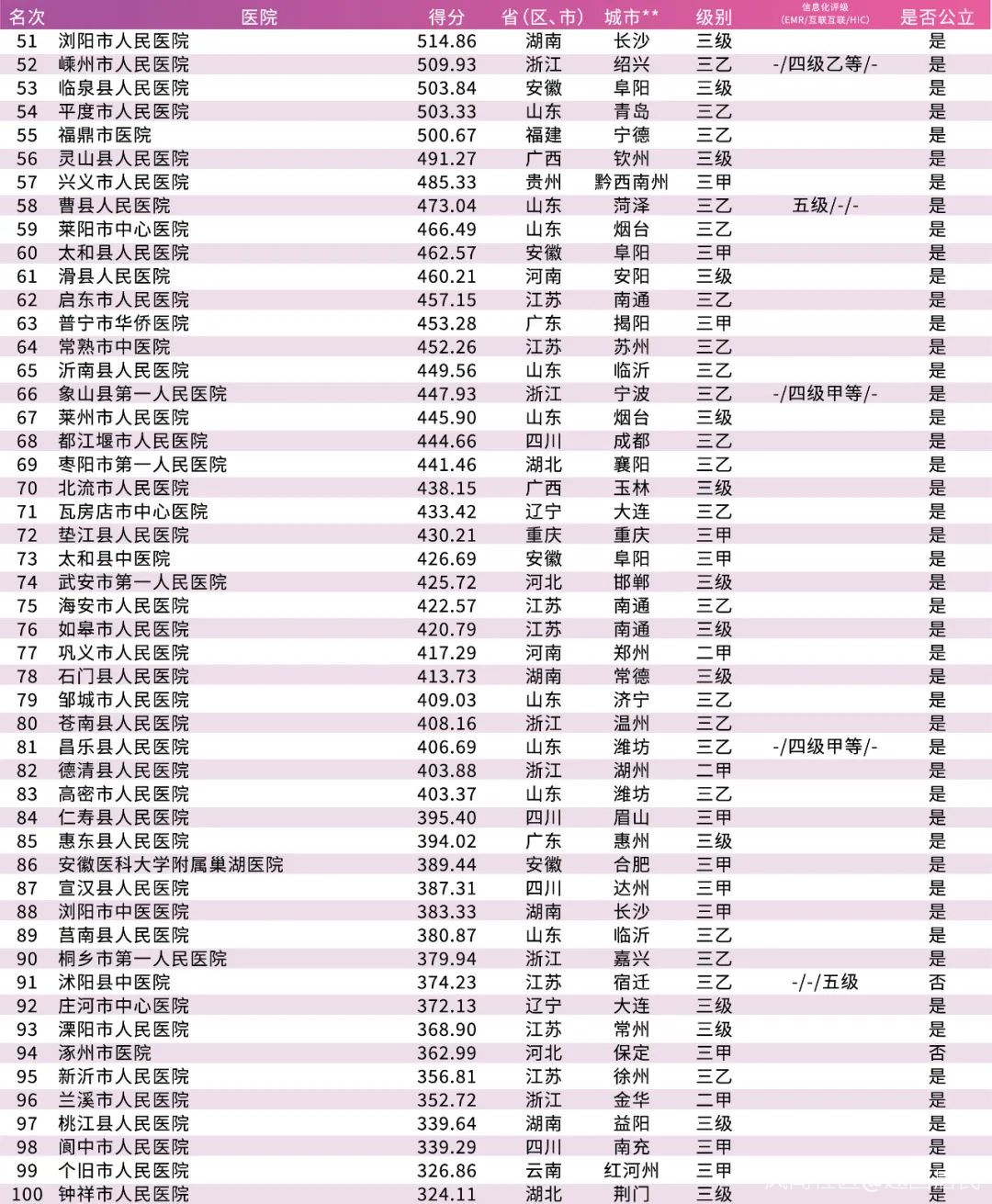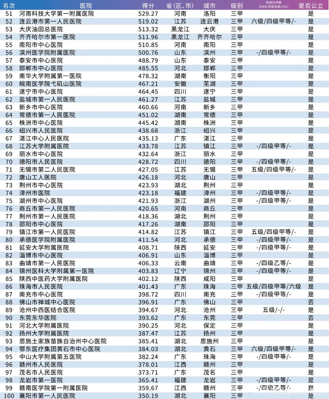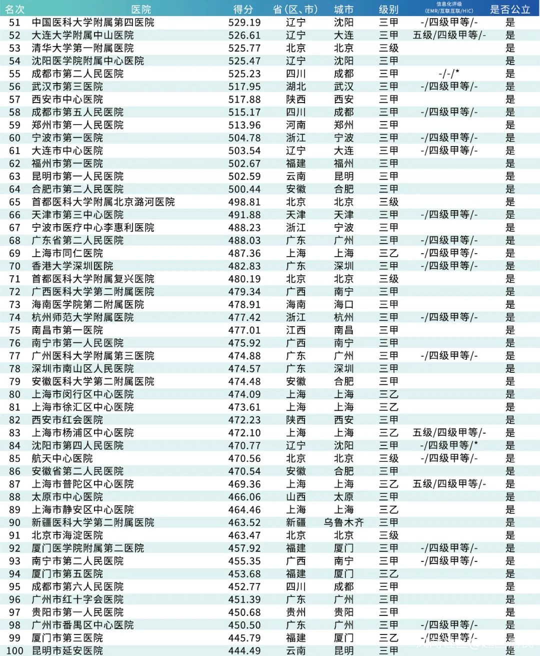 報告除了評選了中國頂級醫院100強,還評選了潛在的有機會上榜頂級醫院100強的,位於省會(首府)城市、直轄市和計劃單列市的綜合醫院,含醫學院校附屬綜合醫院(不含中醫醫院、專科醫院和部隊醫院)