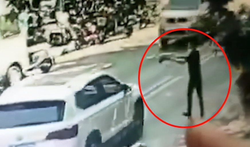 視頻中,律師帶4歲大的女兒駕車去前妻的住處,當他從後座抱出女兒時,突然一男子持槍從後方出現。