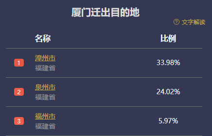 “醫學界”根據百度地圖遷徙大數據9月6日-12日統計,從廈門流出的人四分之三左右在福建省內流動,遷出目的地前三名是漳州、泉州和福州,其中前兩市合計佔比超過一半。