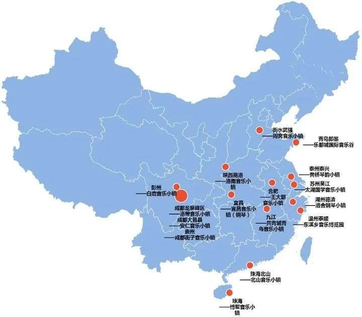 如今,再看我國主要音樂小鎮的佈局,實打實地佔據了“半壁江山”。