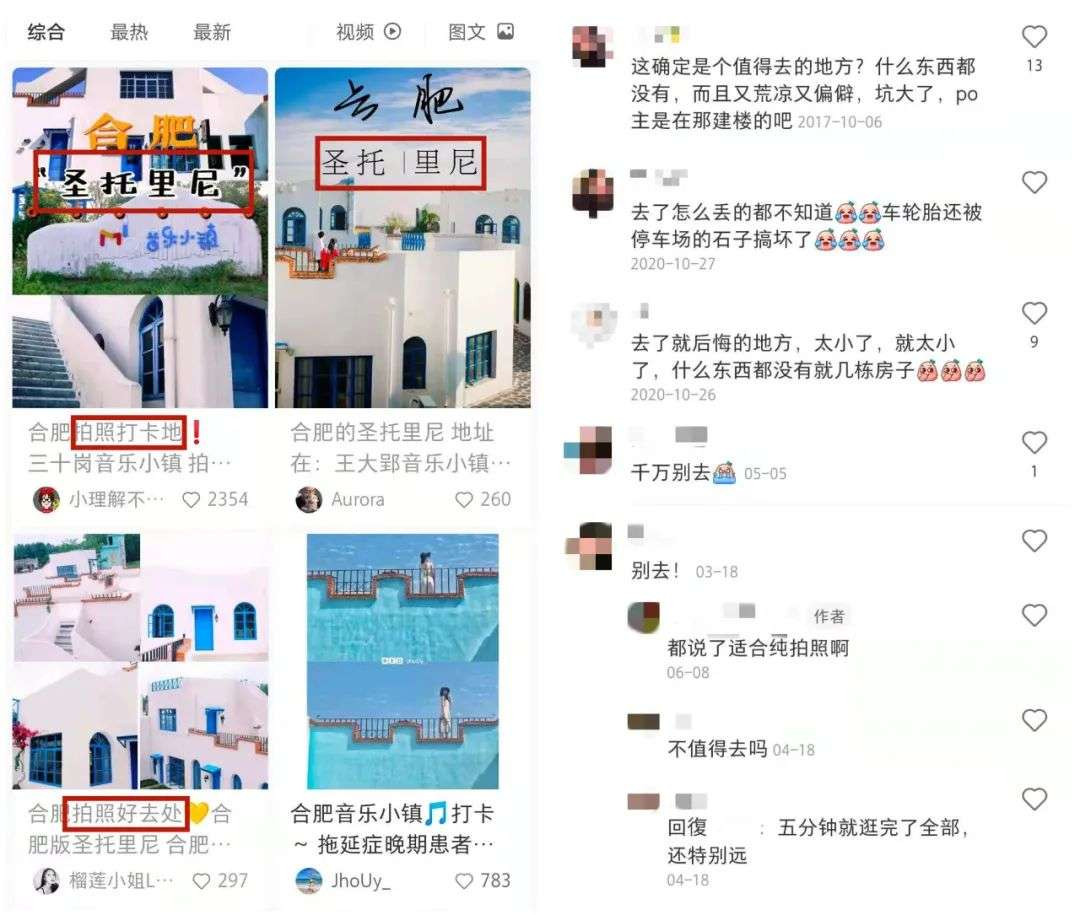 同時,只顧建設而不管服務,也是音樂小鎮的通病。“一窩蜂”式的規劃、開發後,完善服務才是真正的難題。在小紅書上,對標聖托里尼的音樂小鎮就淪為“美照影棚”,網友的評論刺破了層層濾鏡,讓音樂小鎮的蕭條一覽無遺。