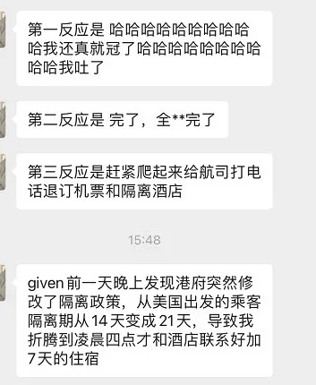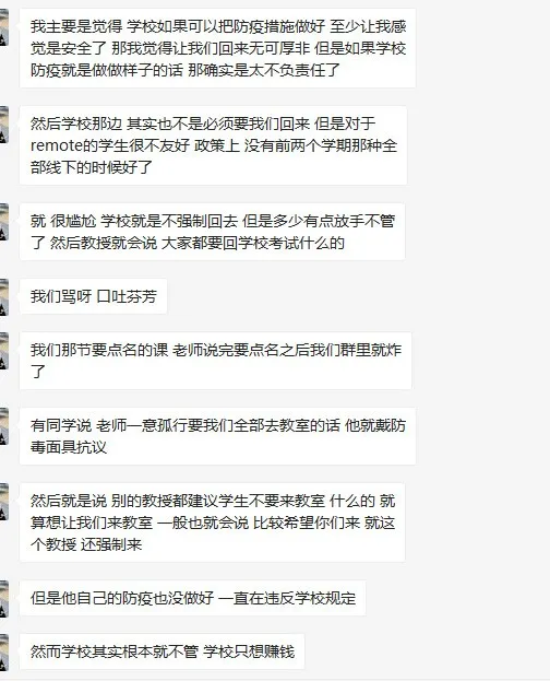 那個時候還挺慌的,學校那邊遲遲不給説法,一副不管怎麼樣我就是要你們來的態度,疫情影響下航班也都比較折騰,又要轉機、價格又貴,我不想去但也沒辦法。