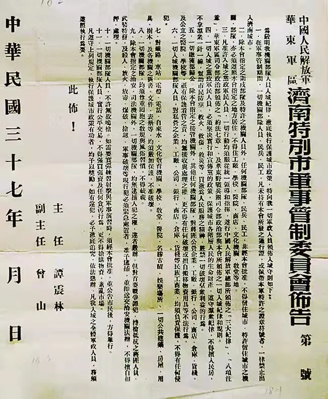進城之前,“青州建設委員會”相繼制定了《約法七章》《入城人員工作守則》等紀律規定,為接管濟南做了政策上的積極準備。