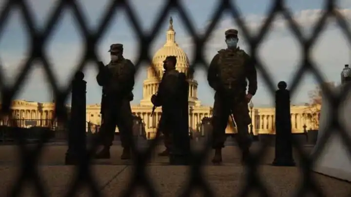 講的是今年年初,特朗普大選失利,美國國會山暴亂,特朗普的支持者們衝進國會大廈,警察開槍,導致6人死亡那件事。