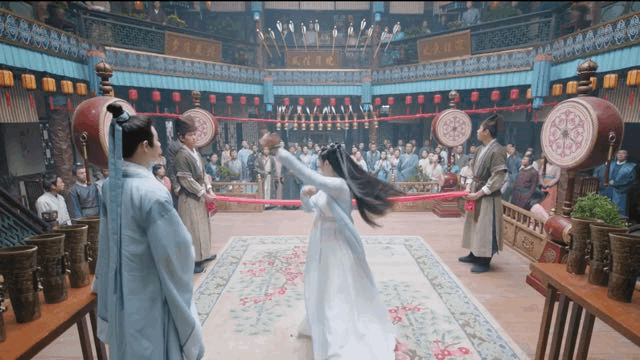 接下來,就出現了本劇的名場面,為了引起君蓁蓁的注意,朱瓚選擇從天而降,英雄救美。