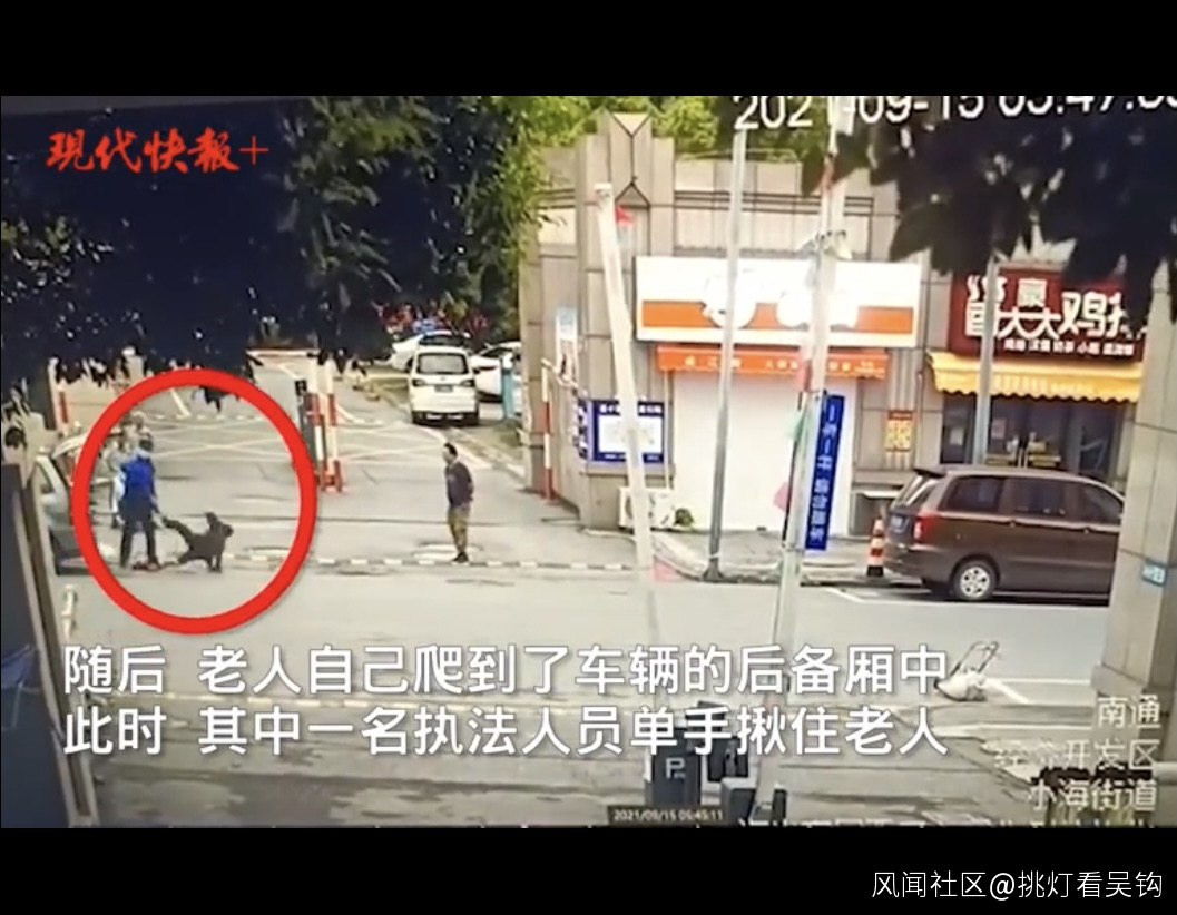 據説,該事件的座標是江蘇南通市經濟技術開發區小海街道。時間是9 月 15 日早晨 5 點多。視頻中出現的三名穿制服的男子均系該街道綜合執法隊的隊員。