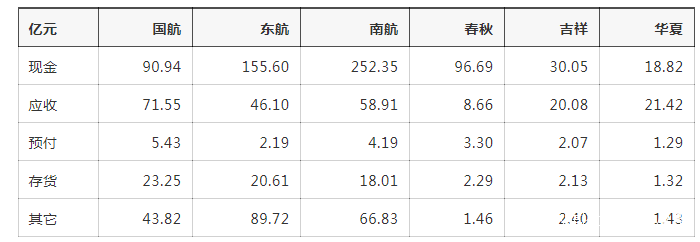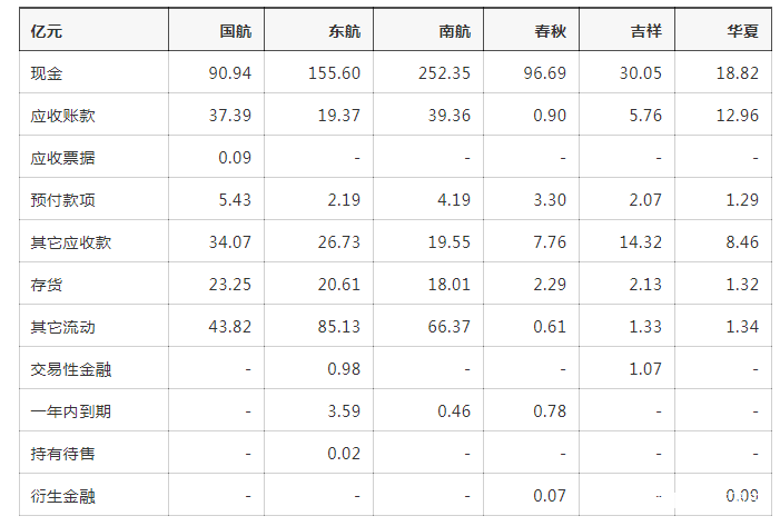 我們對比了這些航空公司 2021 半年報內的資產負債表中的流動資產部分。