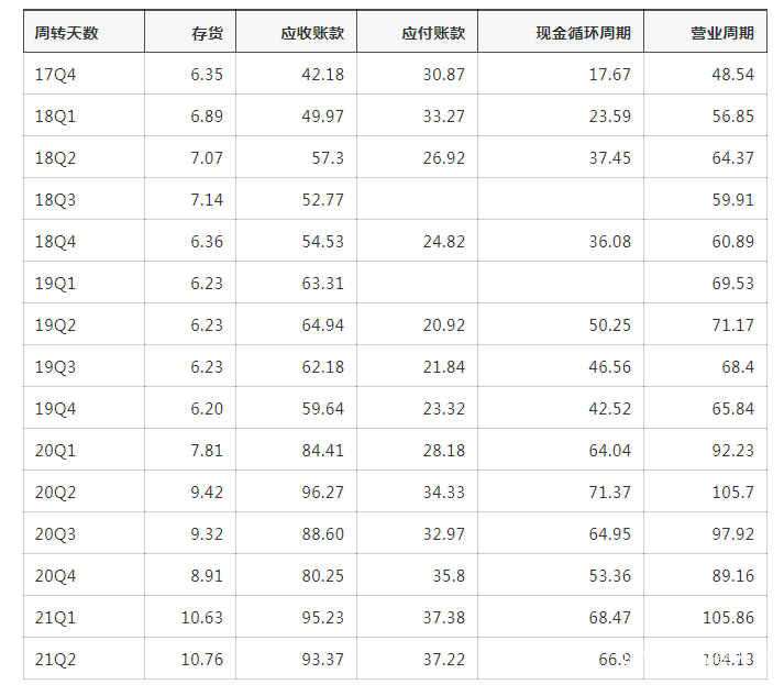 應收賬款週期:從銷售貨物到收到貨款的時間(越短越好);