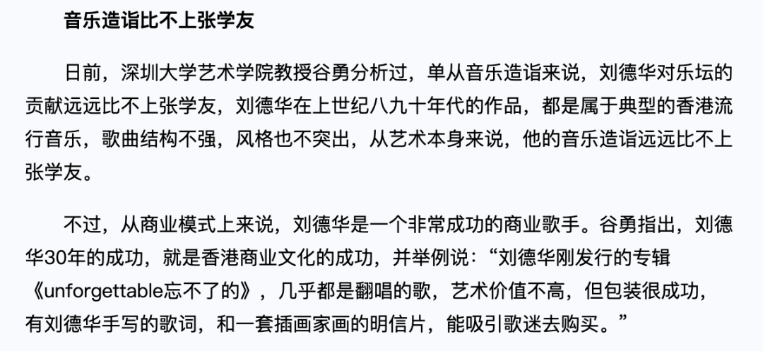 在劉德華剛踏入歌壇的時候,很多人認為身為偶像的他紅不了多久,包括在2011年發行翻唱專輯的時候,還被深圳大學的教授稱為“一個成功的商業歌手”。