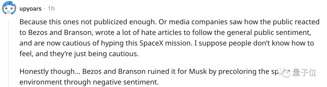 有人立馬就Cue了一下貝佐斯和布蘭森,覺得或許就是因為公眾對之前兩次集中個人的報道的反應比較Emmm,所以這次就不得不謹慎一點了。
