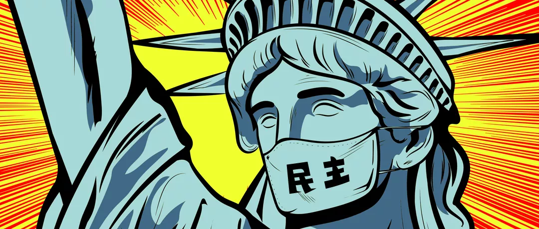 ▲美國心心念唸的“全球民主峯會”,不會成為“普世價值”的高光時刻,而將見證“美式民主”的夕陽西下。(漫畫 | 劉蕊)