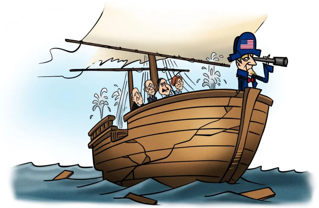 ▲美國同盟體系的大船已千瘡百孔(漫畫 | 劉蕊)