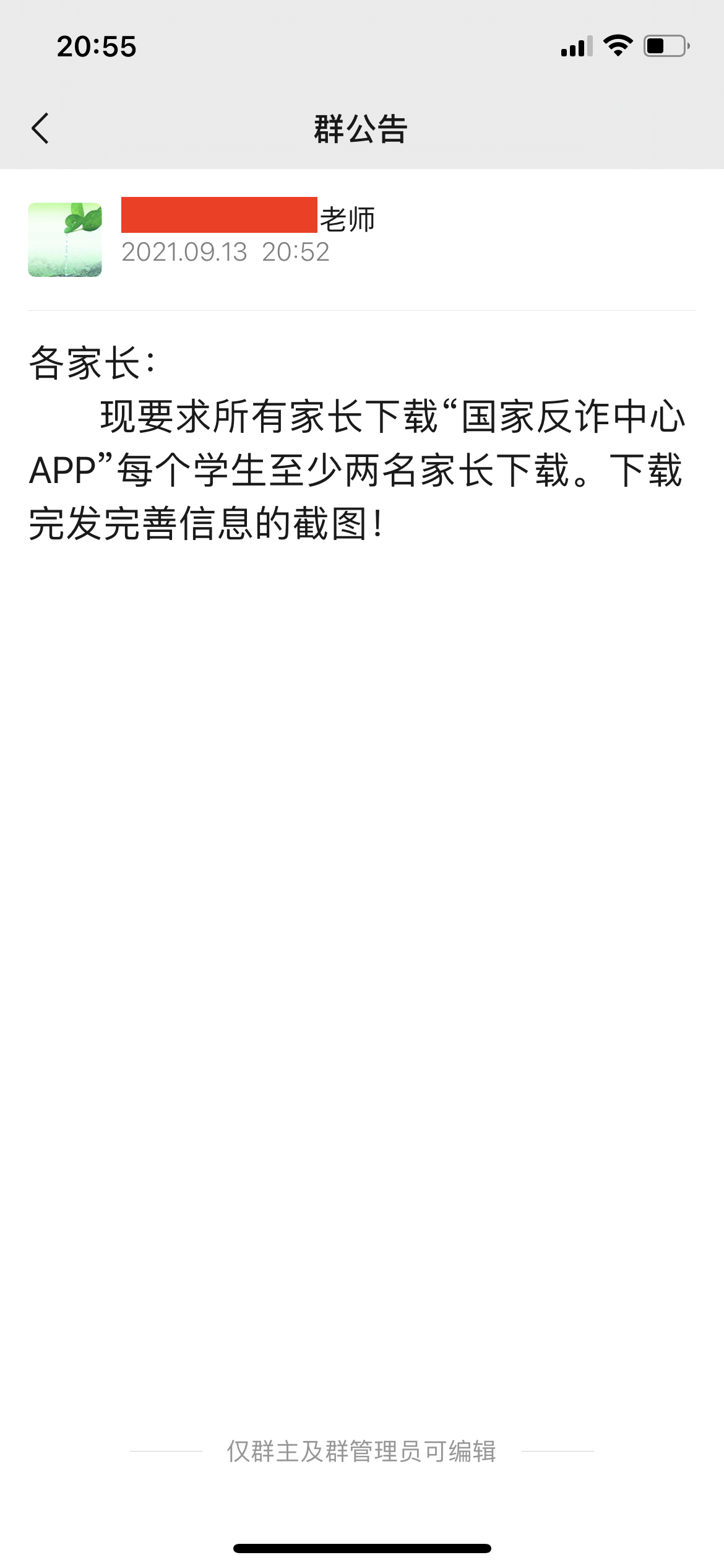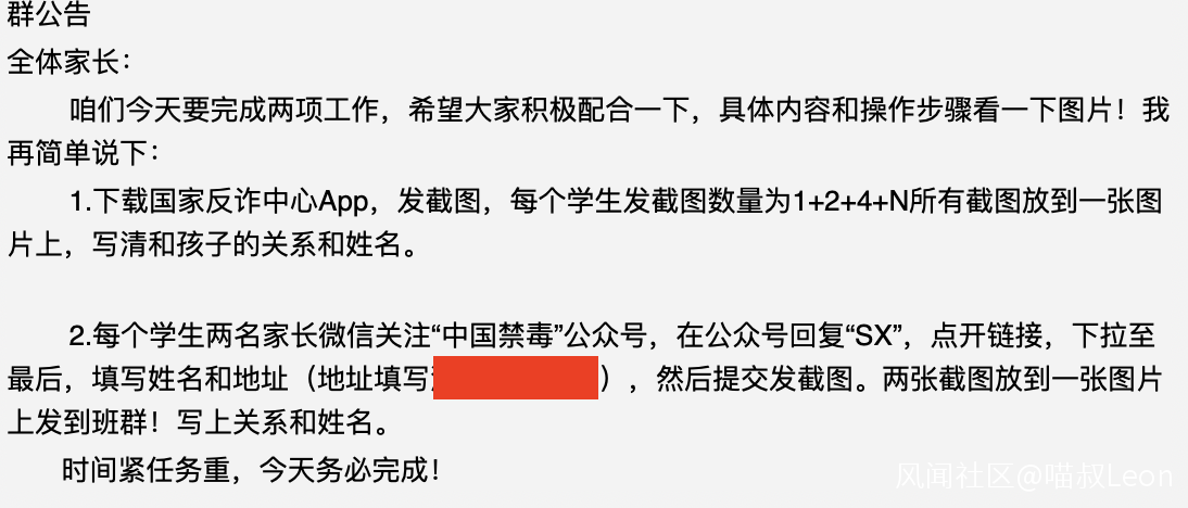 家裏人前兩天發來一條消息,小學要求家長下載“國家反詐中心APP”,並完成註冊提交各種截圖……