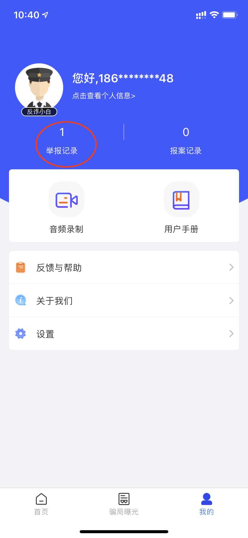 首先説明一下,剛知道陳警官在推廣“國家反詐中心APP”時,第一時間就下載了,並且已有一條舉報戰績,如下圖: