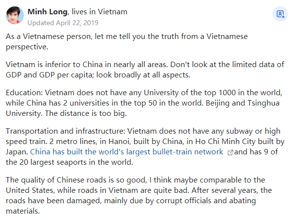 【翻譯】越南還有可能趕上中國嗎?一位信心不足的越南小哥引來了全世界網友的安慰_風聞