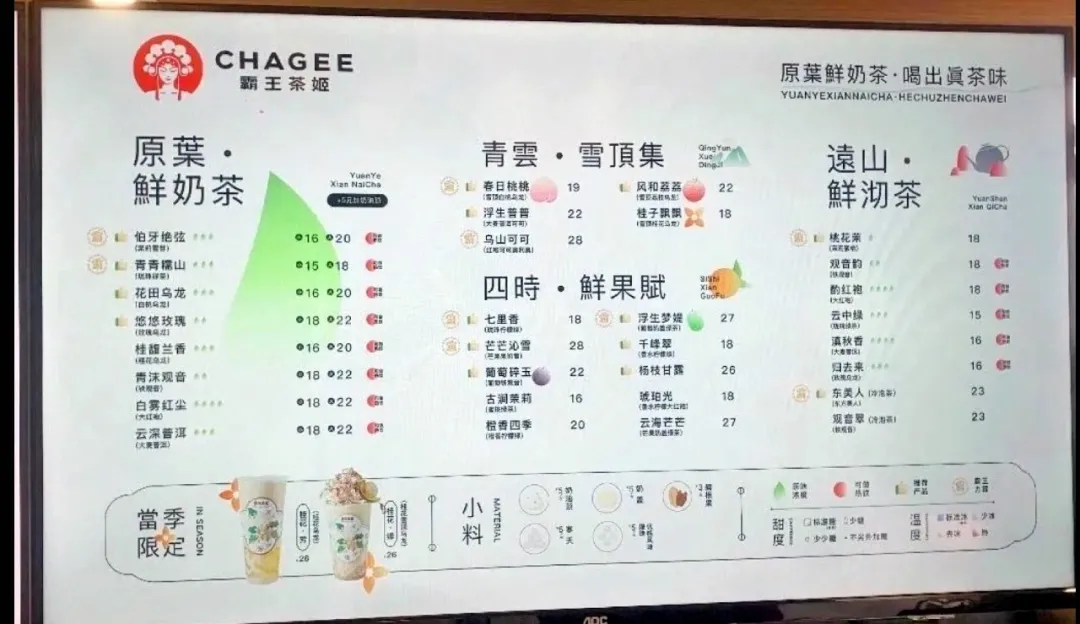 在霸王茶姬看來,押注原葉鮮奶茶,標準化和全球供應鏈都是可以做到的,但是鮮果茶卻很難實現門店標準和供應鏈全球化,“起碼在近10年很難落地”。