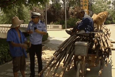 當初這位大爺因為嚴重超載,車上還拉着一人一狗被抓到。