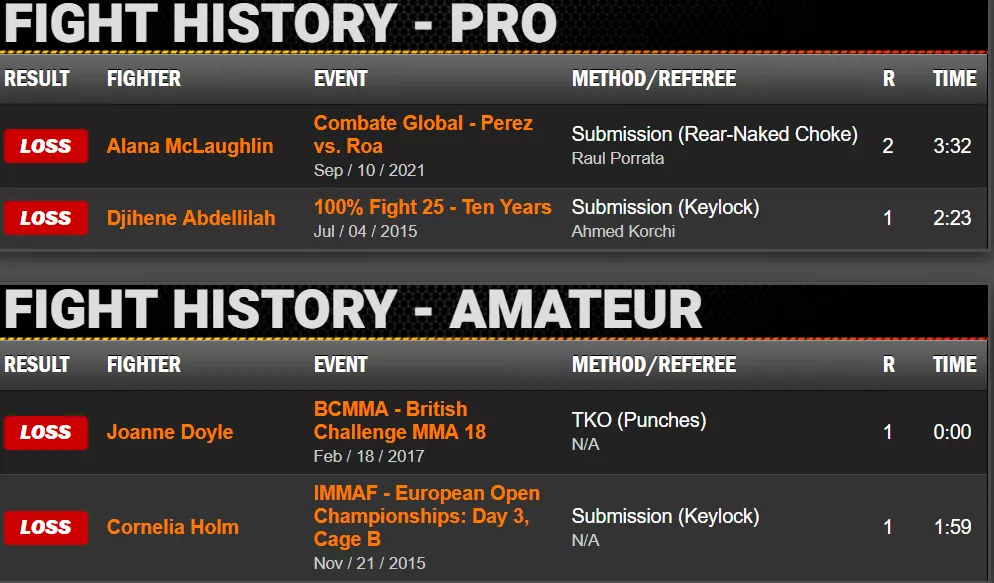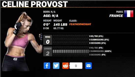 作為麥克克勞林的對手,普羅沃斯特曾經是一名田徑運動員,18歲受傷後改練MMA,期間還學過兩年拳擊。不過她在MMA這個圈子裏的出戰記錄並不太好看。15年和17年的兩次業餘比賽她都輸了,在對戰麥克克勞林之前的專業組比賽中,她首輪2分23秒就被對手KO出局。