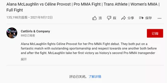 在Youtube這場比賽視頻的下方,評論區已經被關閉了。很多人看過比賽都無語凝噎:就算麥克克勞林説的再大義凜然,但體育不説謊啊,這就是一場赤裸裸利用身體優勢取勝的比賽。