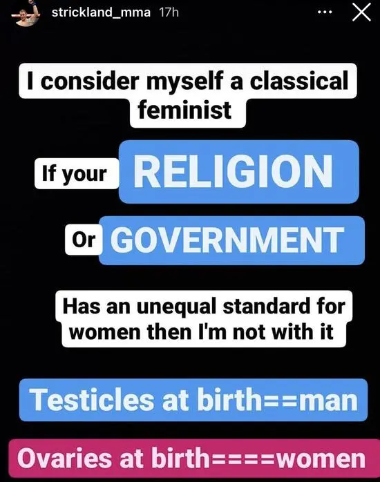 賽後,作為專業人士的UFC中量級選手斯特里克蘭德直接站出來怒噴麥克克勞林。他在IG上説:“改變你的名字,就可以稱自己為女人?但你仍然是一個他X的男人,滾出女子綜合格鬥,懦夫,體育委員真是一羣廢物。”