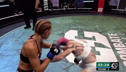 而她和麥克克勞林的比賽過程也沒有超出大家預計太多,在這場水平不高的比賽裏,一開始普羅沃斯特還靠經驗和技巧勢均力敵一下(麥克克勞林出道晚,因此技術很一般,一度被普羅沃斯特打得站立不穩,但每次被打之後麥克克勞林都能很快恢復狀態)。