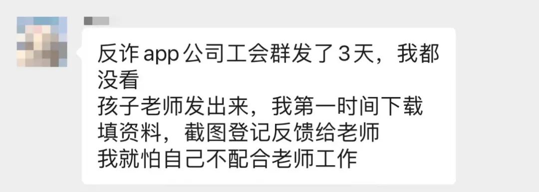 家長的“煩點”在哪呢?大家其實煩的不是一個接龍,更不會因為被要求安裝一個app。比如這種反詐工具其實是普惠於民的好事情,大家本不反感,但讓學校老師來施壓叫家長去安裝,這就感覺變了味。
