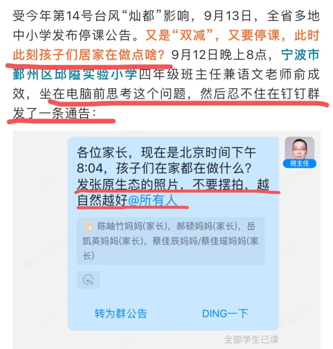 其實是想説這位老師關心學生,和學生與家長的交流方式特別親切,對吧?但看完總覺得哪裏不對勁,也許是因為“不明白這個新聞在宣揚什麼”,是希望更多老師都能這樣,晚上8點多了也沒點私生活,還要讓家長配合完成他的“好老師自我修養”並把這事透露給媒體嗎?