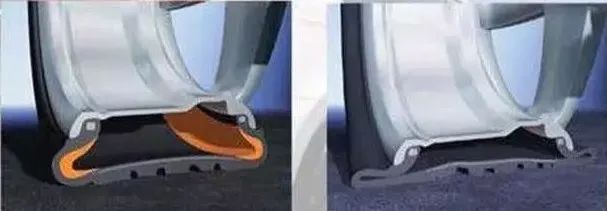 左圖是泄氣保用輪胎,右圖是普通輪胎