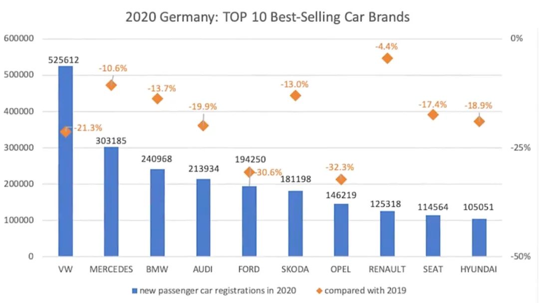 從上面的排名統計我們可以看出來,雖然因為新冠疫情大家的銷量都產生了巨大的跌幅,這三巨頭還是穩居榜首。