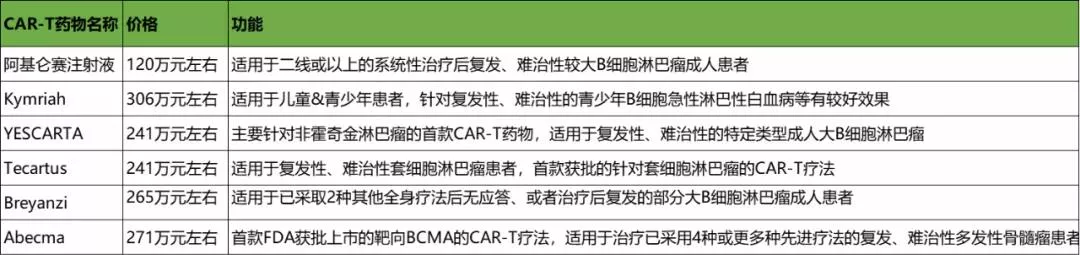 中國第一款獲批的CAR-T產品是復星凱特公司的奕凱達(阿基侖賽注射液),於今年6月上市,用於治療既往接受二線或以上系統性治療後復發或難治性大B細胞淋巴瘤的成人患者。據網傳藥品銷售訂單顯示,奕凱達零售價為120萬元/袋(約68ml)。