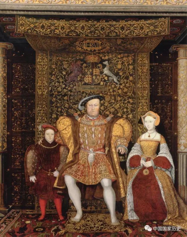 亨利八世(中)、簡·西摩爾(右)與他們的孩子愛德華王子(左)