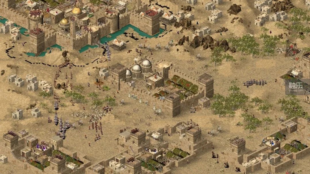 可是當我打開高清版遊戲的時候卻傻了眼。首先是界面的變化,遊戲高清化後界面UI都小了一圈,很難看清,把分辨率調低才大概能看到地上走路的角色。仔細一看才發現,印象中活靈活現的角色小人們其實只是些模糊的像素塊,大多數士兵都難以分辨細節。操作部分更是讓我感到陌生,《要塞:十字軍東征》的單位選中、移動和建築建造方式我幾乎都完全忘記了,又花了好長時間才弄明白。