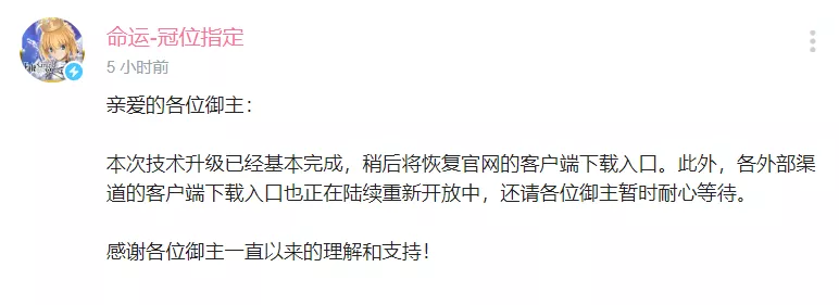 ps.今天下午,「命運-冠位指定」恢復了官網的下載,但是我並不開心。
