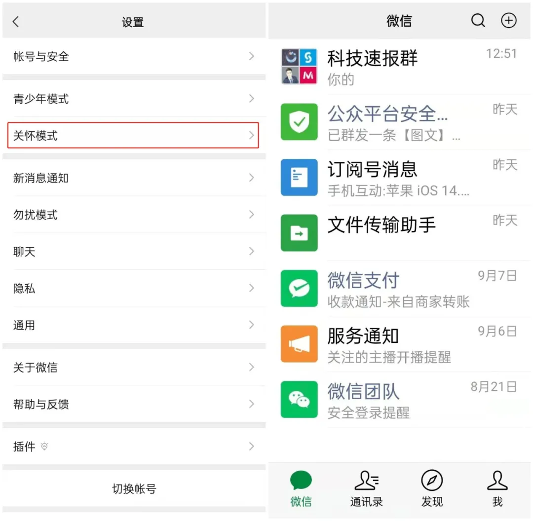 安卓微信此次內測,除在設置中新增“關懷模式”外,暫無其他亮點新功能。可怕的是,這唯一新增的功能果醬妹也依然沒有被灰度到,有“關懷模式”的朋友在留言區打個1。