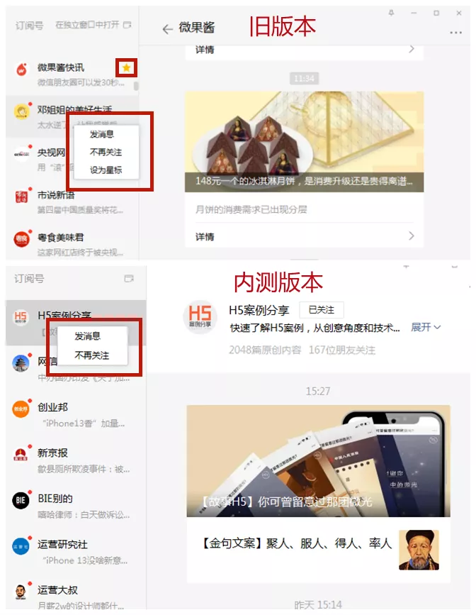 從置頂功能到星標功能,公眾號運營者為適應微信的變化,花費了不少心思去培養用户星標自己的習慣。如今內測版本的電腦端微信卻下架了“星標”功能,屬實讓果醬妹大受震撼,並造成一定程度上的使用障礙。