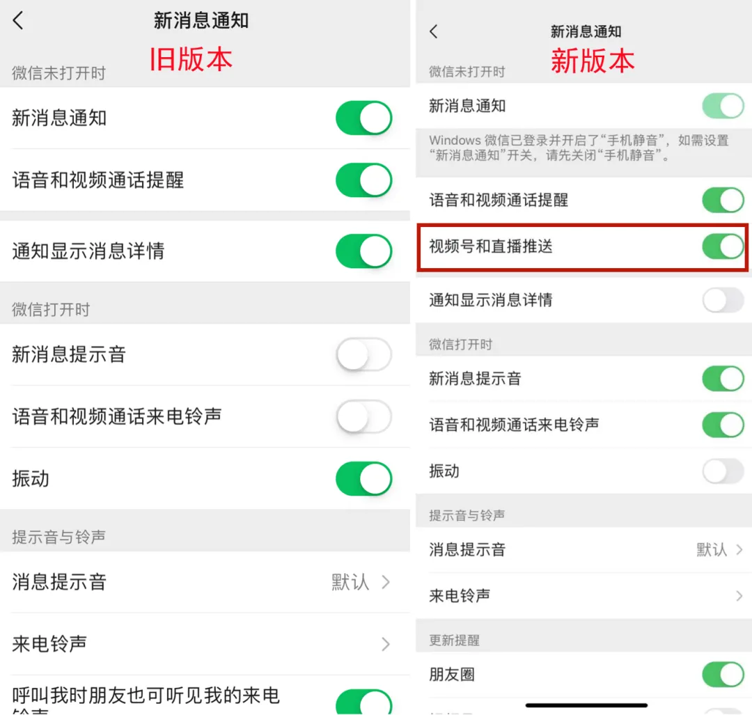 這樣一來,不僅對用户有了交代,也為視頻號打造了又一巨大流量口。不僅如此,在iOS微信8.0.13版本中還新增了“視頻號和直播推送”通知。至於為什麼不在安卓微信同步上線這個功能,果醬妹也沒搞懂。開啓後,在微信未打開的情況下,用户就可以收到視頻號和直播通知。