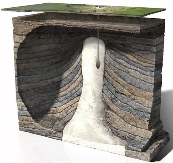 第三種是鹽穴儲氣庫。所謂的鹽穴,顧名思義,就是地下較厚的鹽層或鹽丘中採礦後會形成地下洞穴,鹽穴深埋在地下,高温高壓下的鹽具有一定的塑性,具有在產生一定的裂縫條件下自動癒合,很適合儲氣。