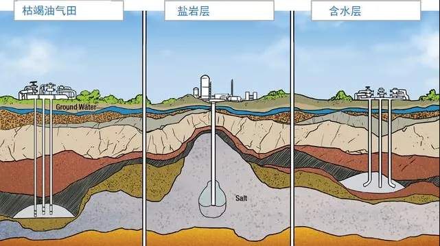 第一種方式,利用現有的,已經枯竭了的天然油氣田。