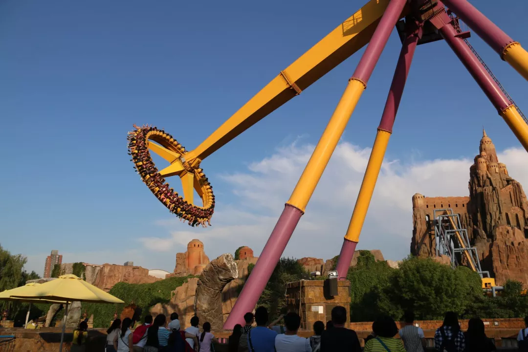 在遊樂園還是個新鮮物種的年代,北京歡樂谷就擁有許多世界級娛樂設備:全世界只有五台的飛行式過山車、亞洲唯一的雙塔太空梭、亞洲最大的大擺錘。