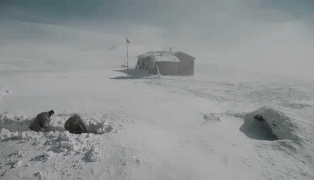 電視劇《最美的青春》實地取景,演繹了塞罕壩第一代造林人的故事。圖中的情景即為上壩學生居住的地窖被大雪掩埋,隊友們挖雪營救。圖源 | 電視劇《最美的青春》