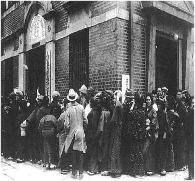 與關東大地震受災者密切相關的震災票據出現沒有結算的不良票據,它們積壓在民間銀行,導致銀行經營狀況惡化。這一問題公之於眾後,擠兑風潮迅速蔓延全國。最後,政府出手暫時平息了這場風波。