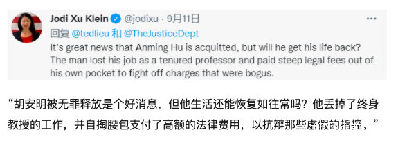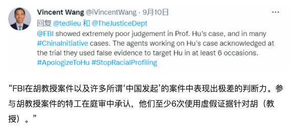 事實上,這些案件有個共性,起訴理由均為被告“隱瞞與中國政府的關係”。可何謂“隱瞞”,何謂“關係”,都是灰色地帶,全憑單方面定義。也就是説,FBI其實找不到中國學者違反規定、當“間諜”的“實錘”,只能拐彎抹角地起訴。類似美國政府抓黑幫頭子“阿爾卡彭”的套路,證明不了黑社會活動,就用逃税的由頭告你。實際上,負責這起案件的FBI探員已經承認誣告,他用谷歌隨便“機翻”了篇中文新聞稿,就把胡安明當成“經濟間諜”。而美國調查人員犯下的低級錯誤,還不止一次。