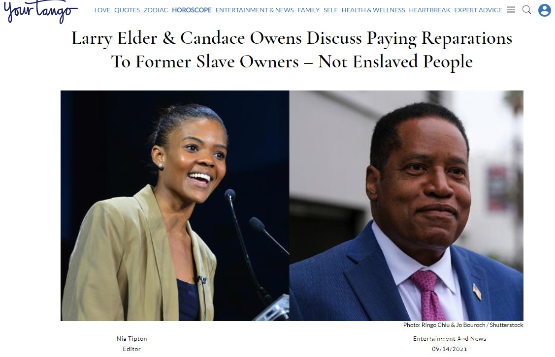 《 Your Tango》:保守派電台主持人兼政治家拉里·埃爾德 (Larry Elder) 出現在“坎迪斯·歐文斯秀”(The Candace Owens Show) 上,並就賠償問題發表了令人矚目的評論。